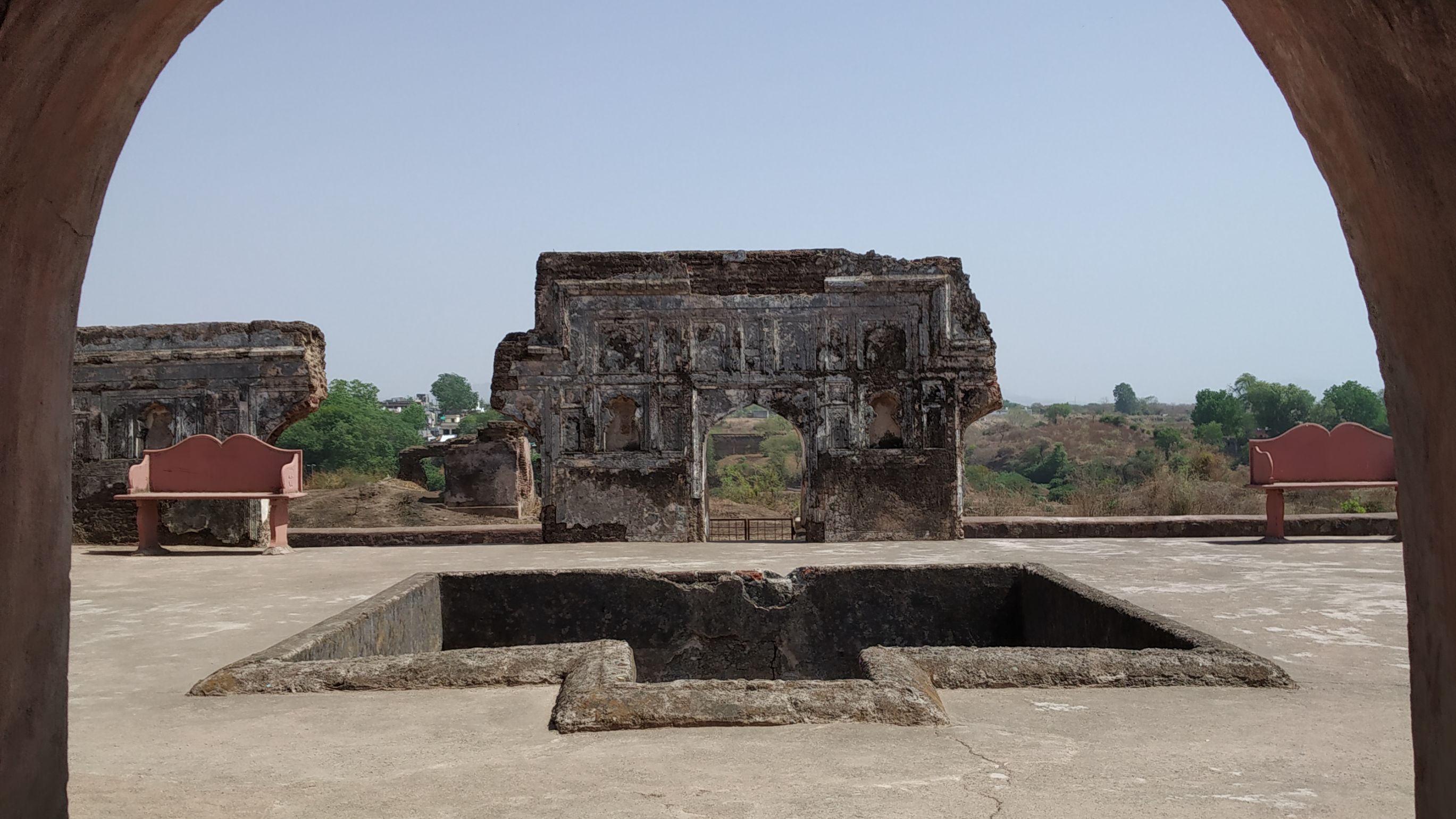 Not far from the city, the Gul Ara Bagh has a pair of pavilions on either side of a small reservoir that consists of two adjacent bunds on the Utaoli River. The bunds, which one can cross on foot, had water cascading over them when the reservoir they created was full. The two pavilions are not large and still bear traces of paint on the inside.
