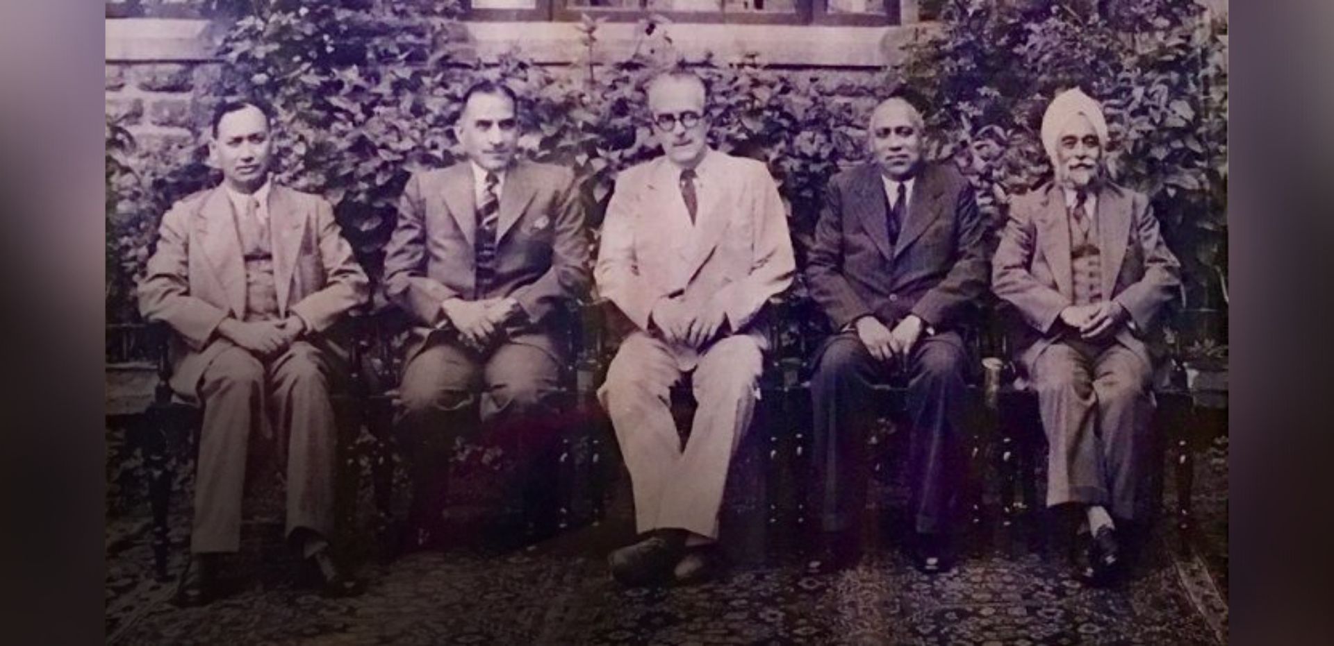 Cover Image: Members of the Punjab Boundary Commission (Left: Justice Muhammad Munir, Justice Din Muhammad; Centre: Cyril Radcliffe; Right: Justice Mehr Chand Mahajan, Justice Teja Singh)