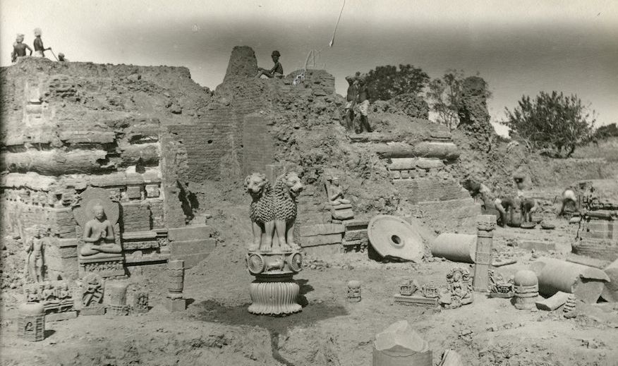 The original Lion Capital, now in the museum at Sarnath in Uttar Pradesh, was commissioned by Emperor Ashoka, the great Mauryan King, in the 3rd century BCE, and is a powerful symbol of Buddhism. It is a magnificent, 7-foot-tall sculpture of four Asiatic lions standing back-to-back, representing power, courage, confidence and pride. They are mounted on a base or an abacus with a frieze of sculptures of a lion, a horse, a bull and an elephant separated by wheels or chakras. The abacus, in turn, is mounted on an inverted lotus, the universal symbol of Buddhism.