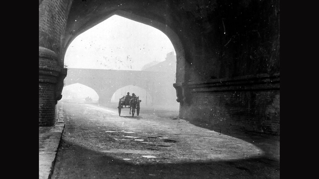 Pictures illustrating this feature of Old Delhi were mainly shot from 1950 to 1956 with the sole exception of the Kashmiri Gate photograph shot in 1946. Right from the early days while roaming around Old Delhi for interesting shots I tried to capture an unusual angle, weather conditions, or a unique subject like an old tram car which have vanished since the sixties. Before concluding, I might add that while in our last year at the university I was bold enough to ask three of my class friends from Miranda House, the premier ladies college in Delhi at that time, to pose for me inside the Rang Mahal of the Red Fort for adding colour and interest while creating a lively photograph of Shah Jahan’s palace.