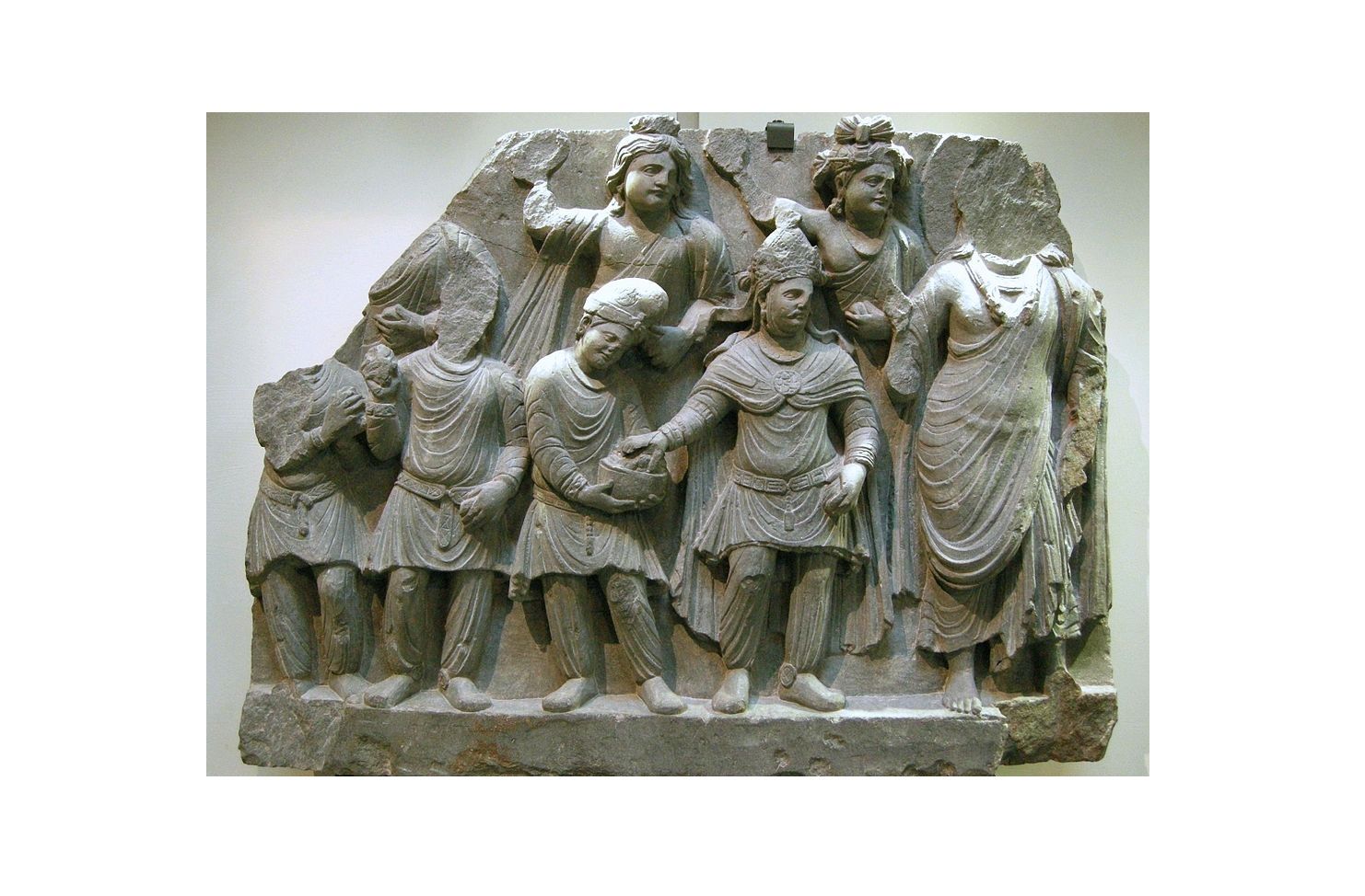 In the Gandharan region, a bowl-shaped valley now in Pakistan, where the great cities of Taxila-Sirkap, Pushkalavati (modern-day Charsadda) and Purushapura (modern-day Peshawar) flourished during the Kushana period, a distinct culture emerged that had a very strong Greco-Bactrian influence. This was because most of these cities had been established by the Indo-Greeks and Sakas, even if the Kushanas later made them their own. That heritage explains why the images of the Buddha created here resemble those found in Greece and Rome.