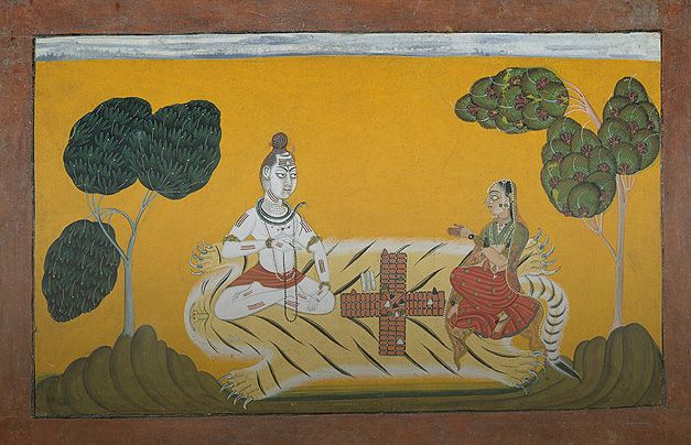 References to board games have also been found the Rig Veda (written around 300 BCE), which has the Aksha Sukta, a 14-verse hymn, dedicated to a game of dice. The Skanda Purana, dated to the 7th century CE, mentions a game of dice played between Shiva and Parvati.