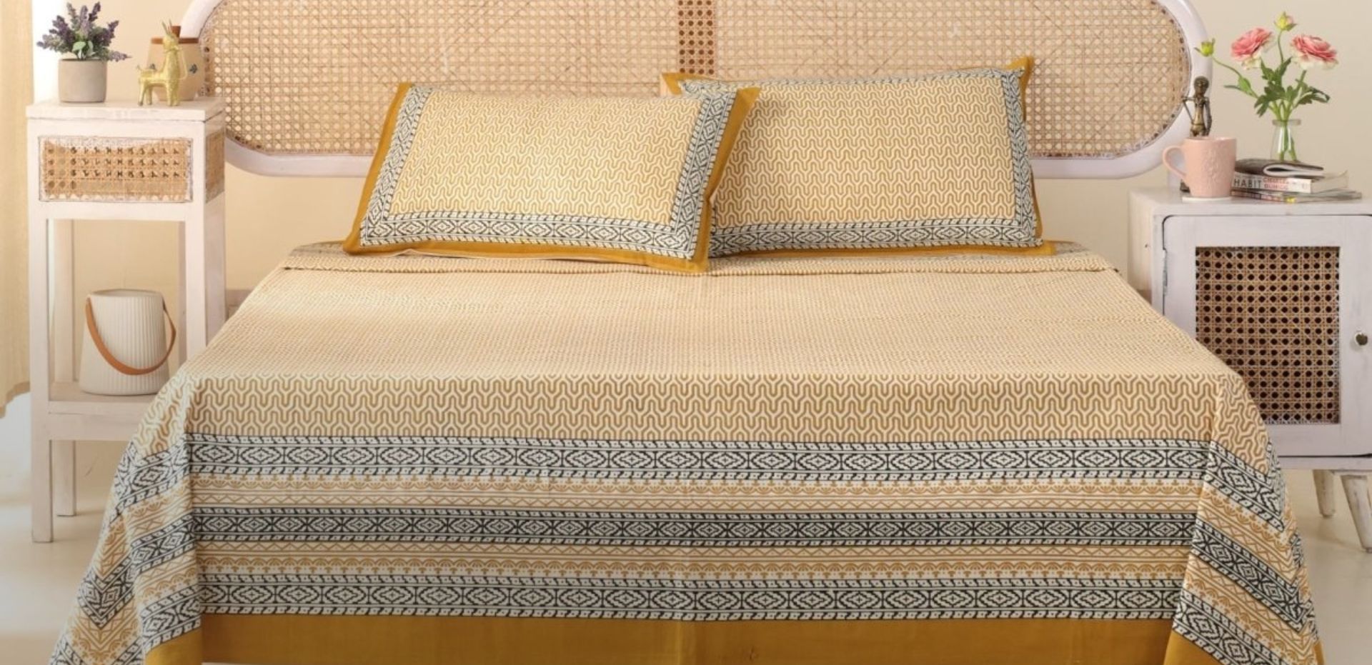 Your bedroom should feel like a sanctuary—a space where modern design meets the warmth of cultural heritage. Add charm with handmade home décor like bedding and textiles from Peepul Tree’s range of hand-printed double bedsheets. A bed adorned with Sanganeri prints in mustard and marigold hues exudes warmth and richness, yet keeps the overall ambiance serene and modern. To enhance the cozy vibe, layer textures with a handwoven throw at the foot of the bed or small bedside rugs. Peepul Tree’s handwoven throws in earthy colors or traditional block prints bring a stylish, textured element to your décor.