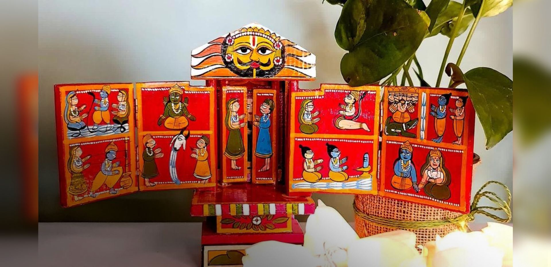 In Rajasthan, crafts like Pabuji ki Phad, paintings dedicated to the folk deity Pabuji, Kathputli or puppets, and Kavad are used as portable shrines or as objects of storytelling, that narrate legends and tales of deities, epics and local legends. It is believed that artisans started making these wooden shrines as a sturdy alternative to cloth paintings.