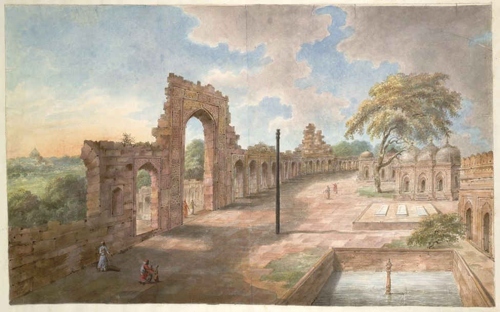 The Mehrauli iron pillar stands in the middle of the remains of the oldest mosque in Northern India, the Quwwat ul Islam built by Qutubuddin Aibak (r. 1206 - 1210), the first Sultan of Delhi’s Slave Dynasty, in 1193 CE. In 1192 CE, Qutubuddin Aibak, then a general of Mohammed of Ghor (the Ghurid ruler of Afghanistan), defeated the Chauhan king of Delhi, Prithviraj Chauhan (r. circa 1177 – 1192), in the battle of Tarain. On the death of his overlord and patron, Mohammed of Ghor in 1206 CE, Aibak declared himself Sultan, thus setting the tone for 750 years of Islamic rule in Northern, Eastern, Western and Central India.
