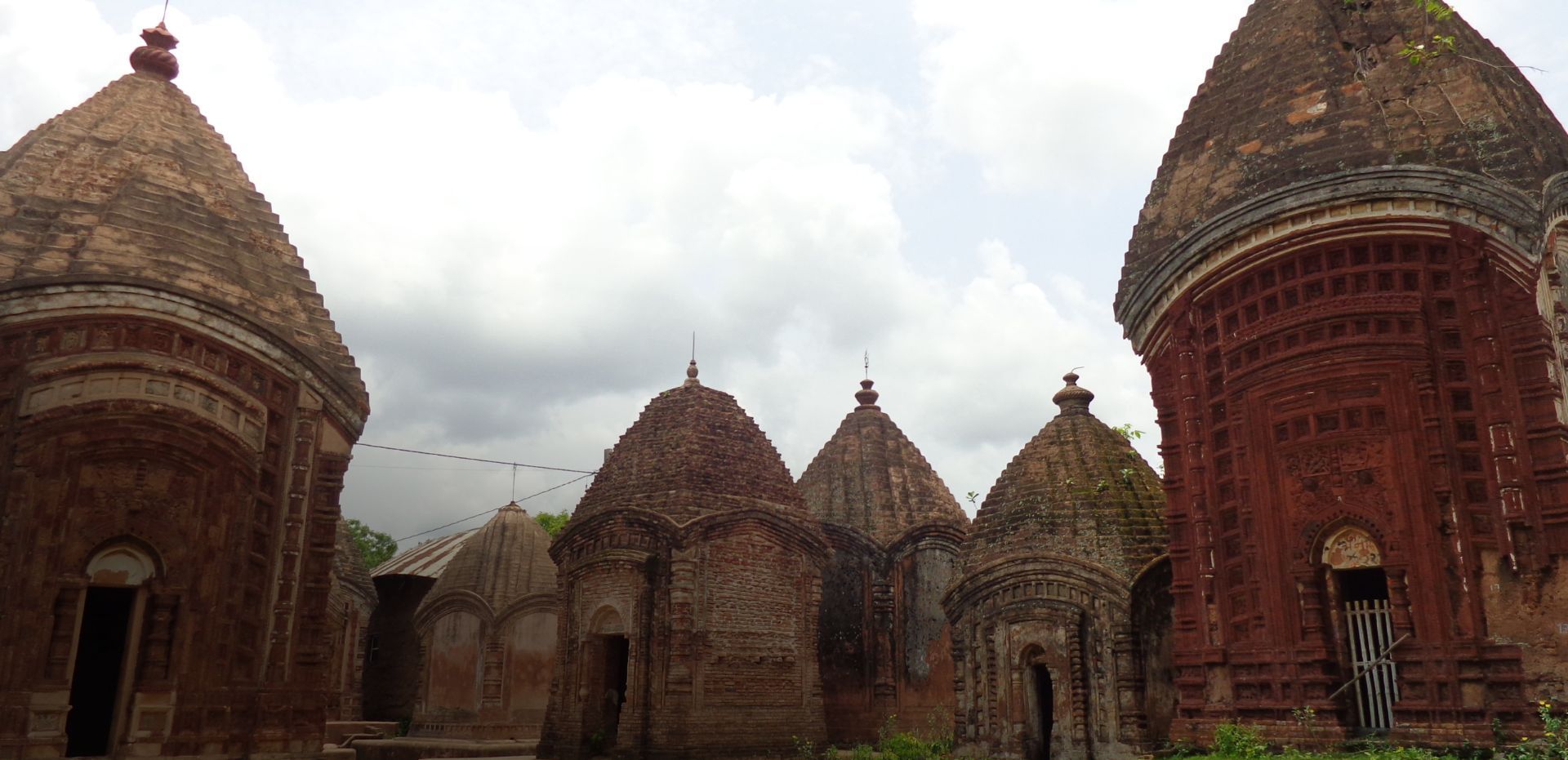 Between the 17th to 19th centuries, the Baj Basanta royal family built a complex of 108 Terracotta temples. The use of terracotta was common in the region as the network of rivers and distributaries here ensured that clay was readily available, while stone was almost absent. Sadly, over the centuries, as the family’s fortunes fluctuated, as many as 36 of these temples collapsed with no money to mend them. Only 72 temples survive today and are in various states of disrepair.