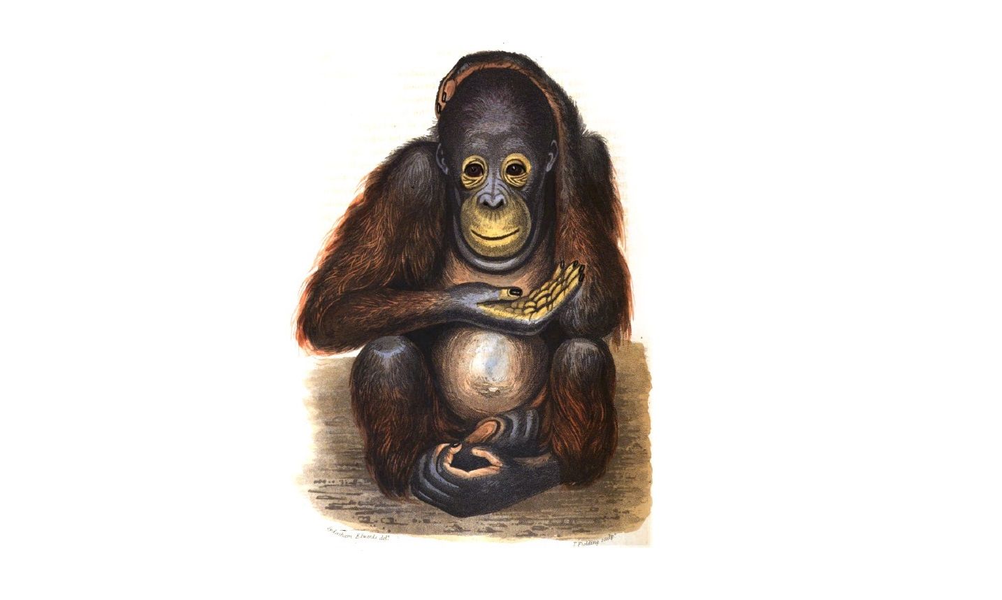 By the time William Montgomerie arrived in Calcutta with the orang-utan, a number of scientific descriptions of varying degrees of precision were in circulation. One of the most accurate accounts is found in The Narrative of a Journey in the Interior of China (1818) by Clarke Abel, who had been presented an orang-utan by one Captain Methuen. But none of the previously studied orang-utans seem to have caused as much amusement and inspired so much affection among their human companions as did Lady and Sir Oran. Sir Oran has the rare distinction of having two separate entries on him (shared with the Lady) in the Edinburgh Journal of Science as well as a book of verse.