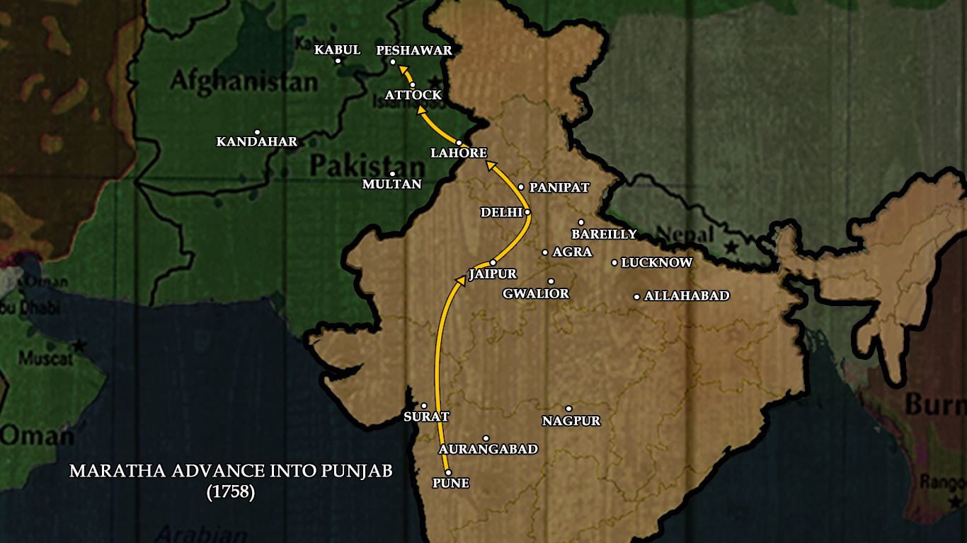 – Following the fall of Lahore in 1758, the Maratha armies conquered Multan, Peshawar, and Attock