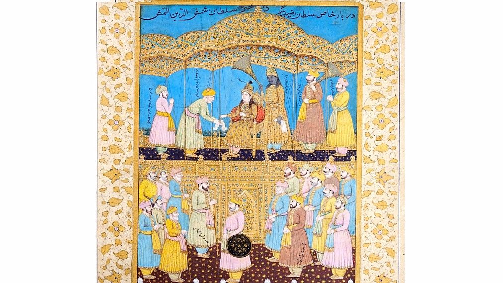 Cover Image: Razia Sultan on the Delhi throne / Pinterest via Salar Jung Museum
