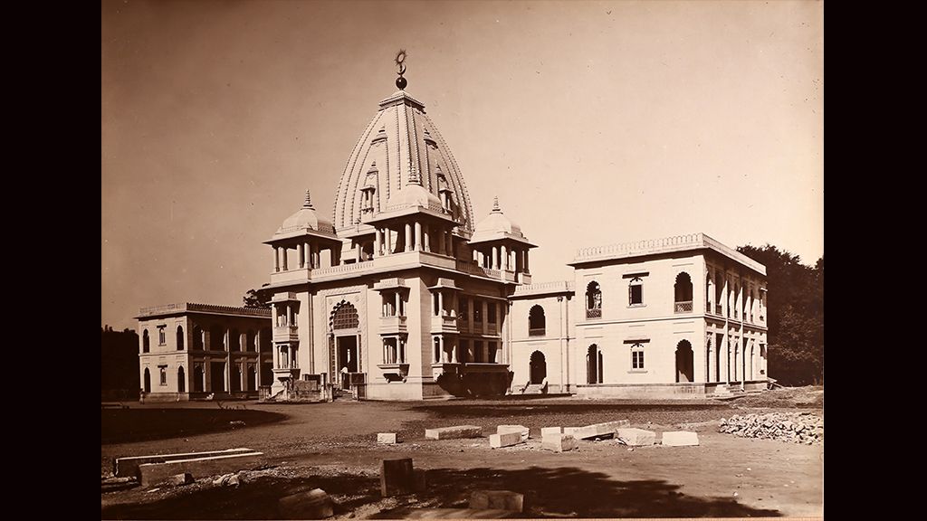 The Kirti Mandir or Glory Temple was built by the Gaekwad rulers in memory of their ancestors. The structure was designed as a modern cenotaph but borrows elements of the local temple architecture. It is one of a kind as it represents both the kings and queens of the state and indicated equal and exalted status to the women of Baroda state. The main tower bronze finial is an amalgam of the sun, crescent, earth and undivided India - conveying the message of the glory of the Gaekwads.