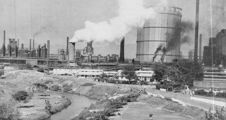 The Tatas’ steel plant, also India’s very first, was developed in a semi-wasteland at the confluence of the Subarnarekha and Kharkai rivers known as Domuhani. Construction began in 1907-08, and it was designed by engineers Julian Kennedy and Axel Sahlin based in Pittsburgh (America’s Steel City). Their plan envisioned a ‘company town’ for about 10,000 residents with bungalows and quarters for housing managers and skilled workers, a recreation ground and a bazaar.